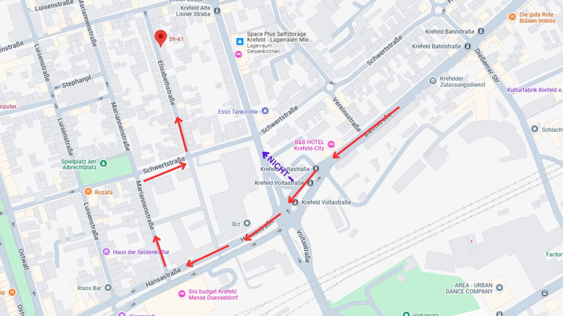 Da zur Zeit in Krefeld massive Straßenbauarbeiten in dem Bereich durchgeführt werden, die teilweise bei Google nicht bekannt sind, hier eine einfache Umleitung um an das Lager zu kommen.